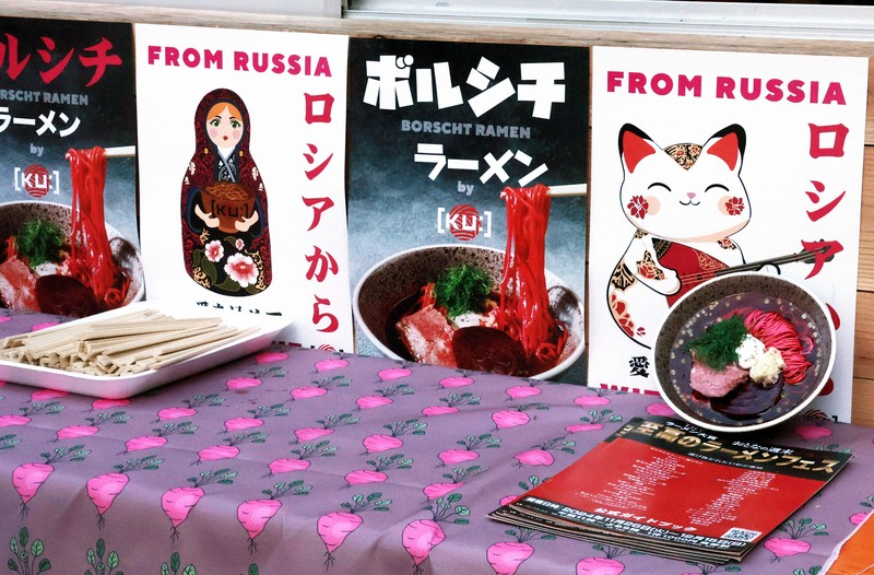 https://mainichi.jp/articles/20241224/k00/00m/030/029000c東京都新宿区で催されたラーメンフェスティバルに出品されたボルシチラーメンのポスター=2024年12月11日、大前仁撮影