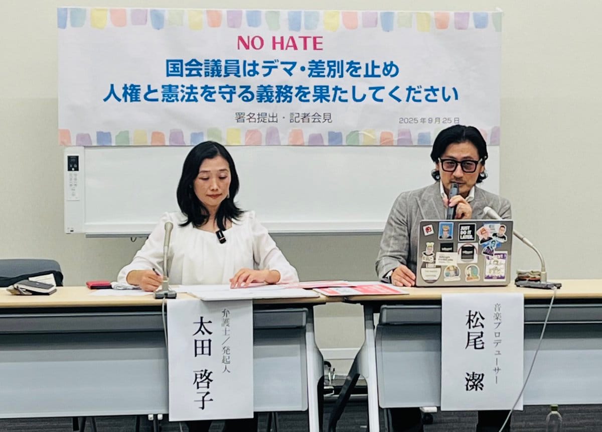 排外主義に反対する弁護士らでつくるグループが25日、東京都内で記者会見し、自民党総裁選に立候補した候補の多くが外国人政策の厳格化を主張していることに強い危機感を示した。太田啓子弁護士は「排外主義的な主張が票になる現状を変えていかないといけない」と強調した。