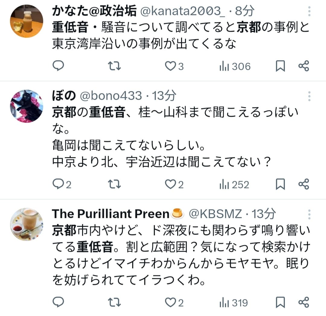 https://twitter.com/zenryaku9/status/1974506078336614445京都市内の原因不明の重低音