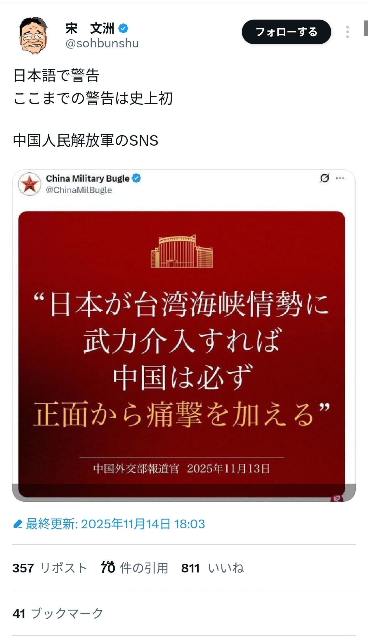 台湾侵略するつもりないならこの文章を出す意味が無いよな