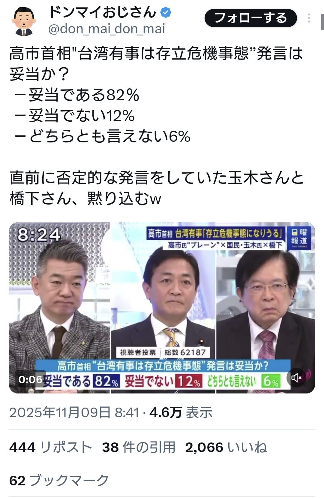 https://twitter.com/hetare_keieisha/status/1989255485615398944?t=QP6lTClJkoW11nYKbzPDbg&s=19というか中国が怒りを表明→日本の「リベラル」が撤回しろ!辞任しろ!