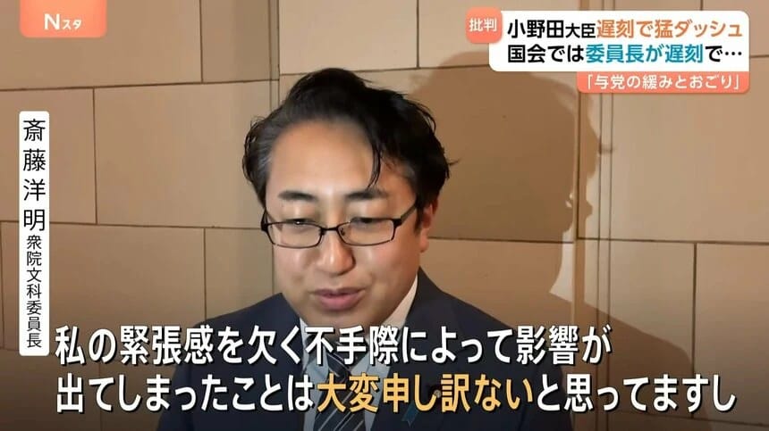 永田町ではきょう、大臣や委員長の遅刻が相次ぎました。小野田大臣が閣議に遅刻したほか、国会では委員長の遅刻が原因で委員会が開かれない事態が発生し、与野党双方から批判の声が上がっています。