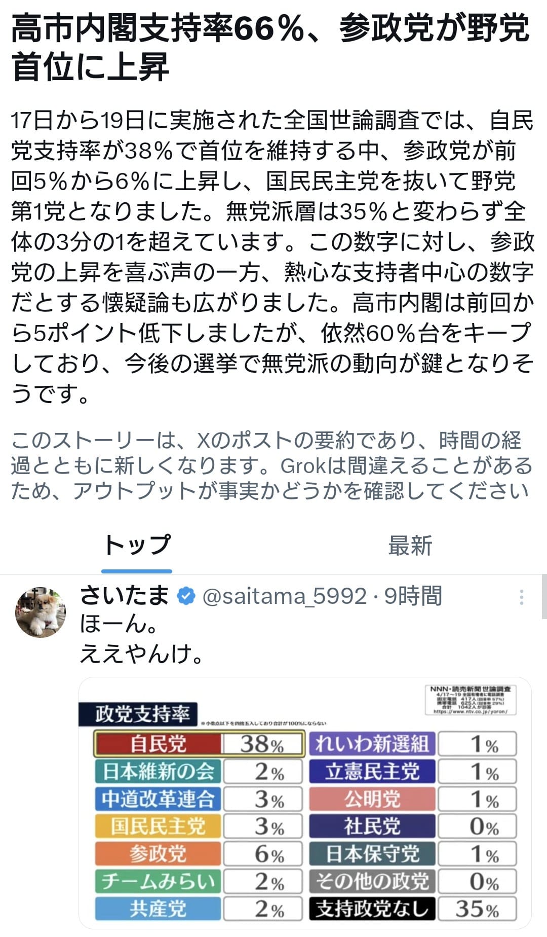 高市一強だな、玉木は一過性だったしチャンスを逃したな