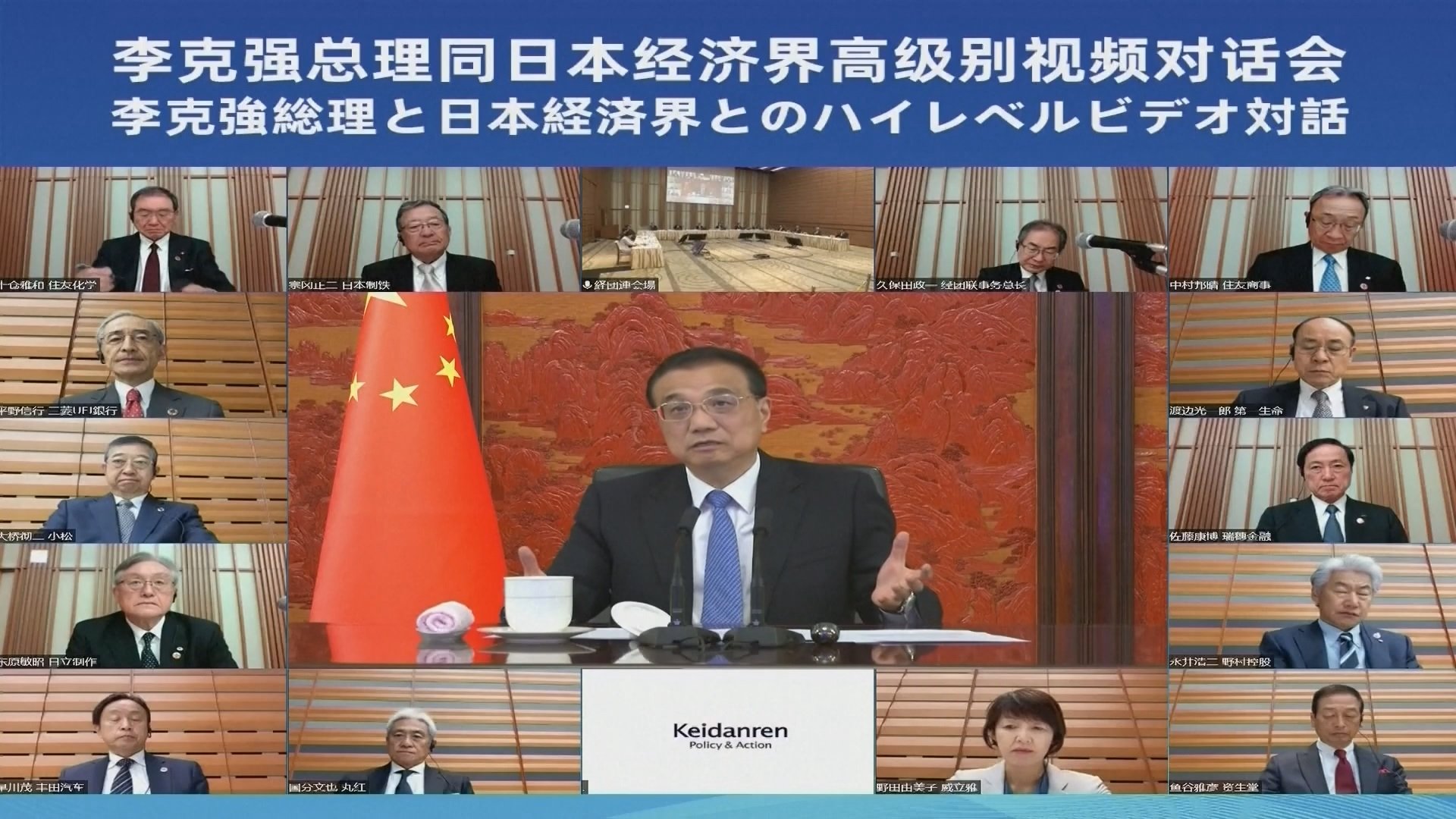 中国の李克強首相は日本の経団連の会長らとオンラインで会談し、両国関係の長期的な発展や中国への投資の拡大などを訴えました。