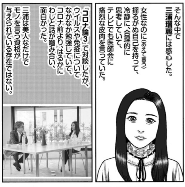 漫画家の小林よしのり氏は「三浦瑠麗、終了」のタイトルのブログで次のようなコメントをアップした。