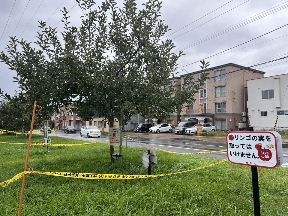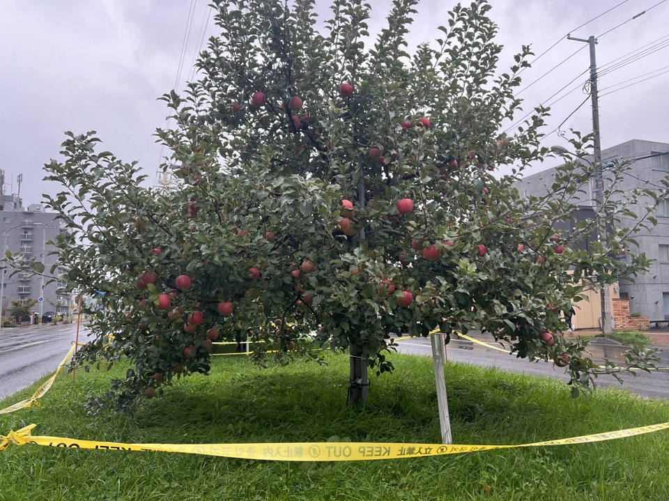 札幌市によりますと、現場付近で道路工事をしていた作業員が9月26日午前3時ごろ、4~5人のグループがリンゴを盗って行く姿を目撃したということです。
