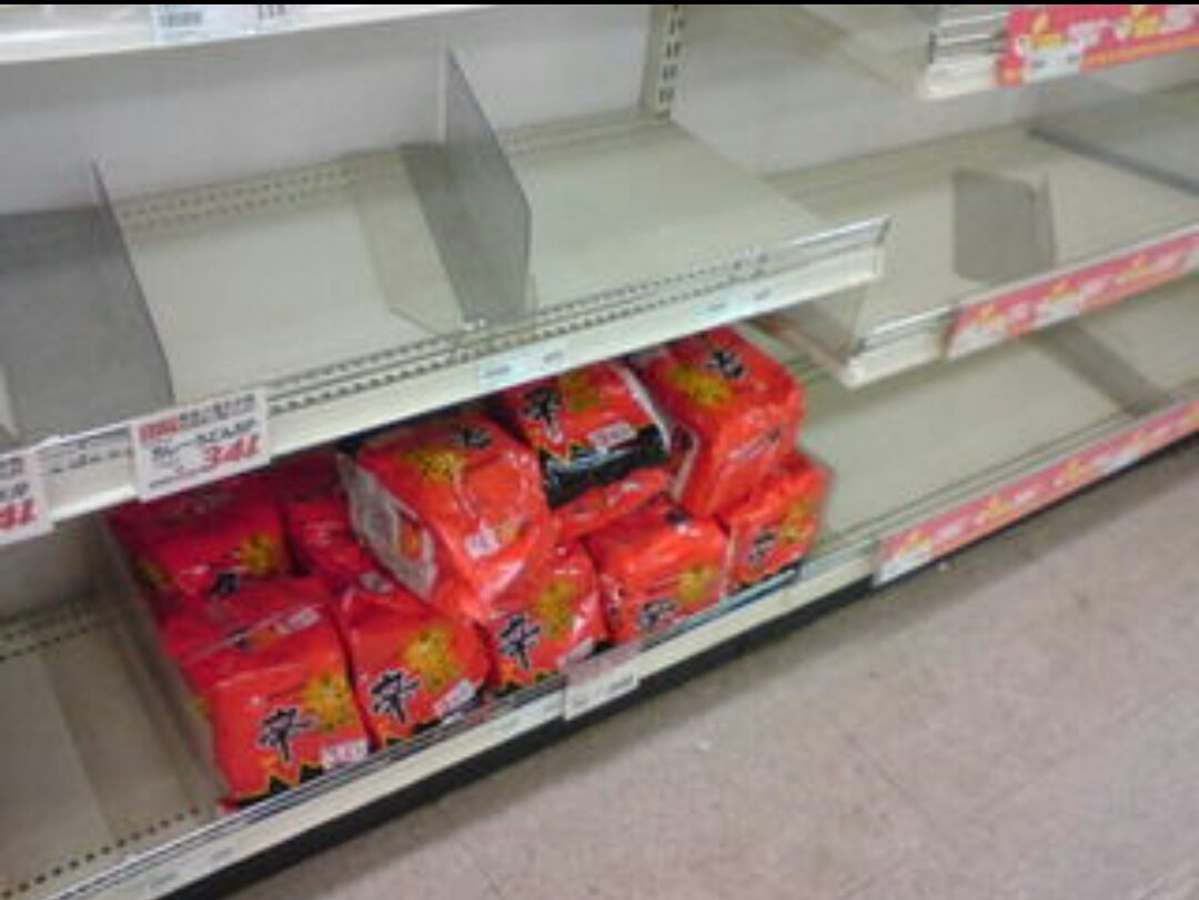 震災時に韓国のカップ麺だけ、棚に大量に残ってた写真を思い出させるな(笑)