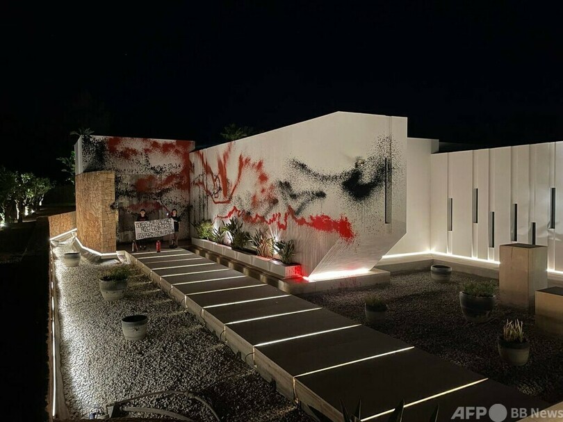 【AFP=時事】サッカー界のスター選手、リオネル・メッシ(Lionel Messi)さんが地中海に浮かぶスペインのリゾート地、イビサ(Ibiza)島に所有する別荘が6日、気候変動に抗議する環境活動家らの標的となり、スプレーで外壁に落書きされる被害に遭った。
